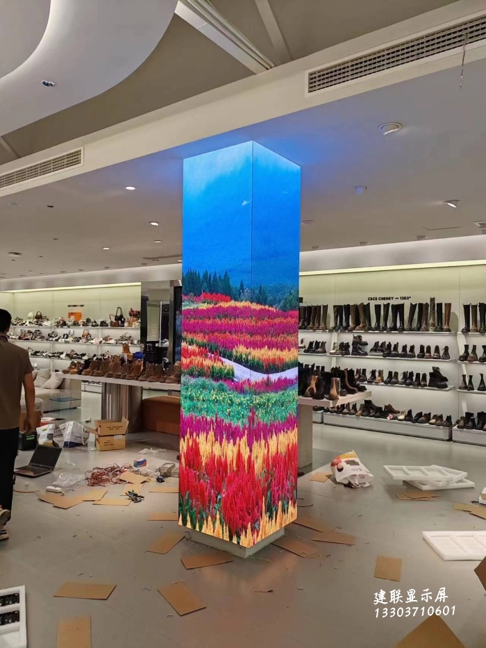 近日,在鄭州某商場,一款柱形LED顯示屏又稱柱子屏安裝完畢,采用室內(nèi)P2全彩LED顯示屏,面與面之間實現(xiàn)了無縫隙化連接!運用了E結(jié)構(gòu)工藝,通過與實際安裝現(xiàn)場環(huán)境相結(jié)合,打造出了創(chuàng)意led顯示屏新品,該屏造型獨特,擺脫了傳統(tǒng)平面顯示屏的感官,給人帶了全新視覺上的立體感!隨著科技的進步和市場的需求,LED顯示屏已經(jīng)不再局限于傳統(tǒng)的平面形狀,越來越多的特殊形狀,如球形、曲面、柱狀形等都已經(jīng)成為可能.柱狀形LED顯示屏因其的視覺效果和功能性而得到了廣泛的應(yīng)用.