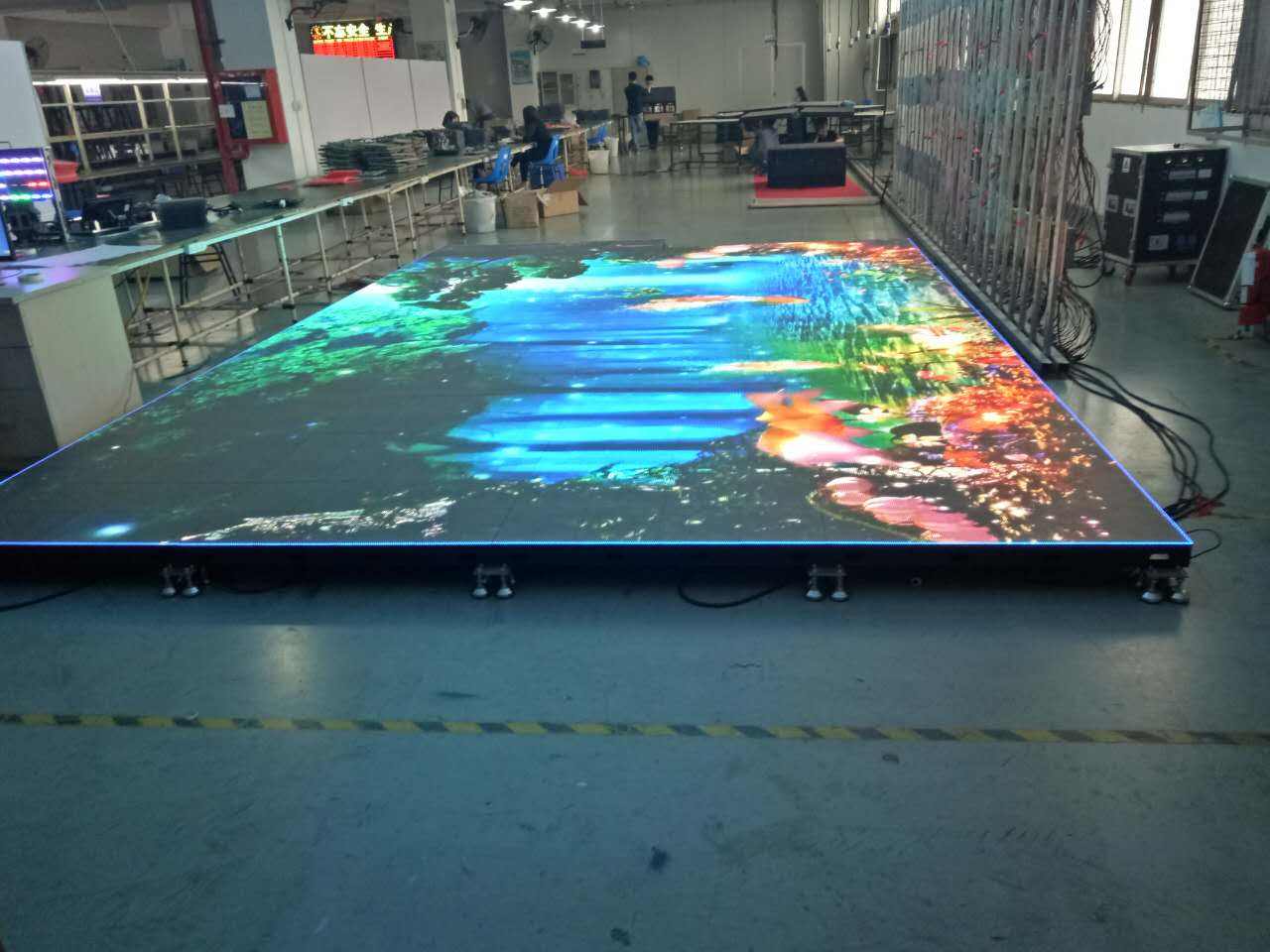 樓梯LED顯示屏是LED地磚屏的一種,是主要應(yīng)用在地板上面有一定的承重和防震功能的個性化LED顯示屏產(chǎn)品。采用了堅固耐用的鋁合金結(jié)構(gòu),高耐磨性的樹脂面罩,使其置于地面可直接踩踏;運用整體密閉式設(shè)計,已獲得IP65防護等級的認(rèn)證;快捷拆裝的模塊化設(shè)計,讓安裝與維護變得輕松容易;該產(chǎn)品在應(yīng)用中配合虛擬軟件技術(shù)和互動軟件技術(shù),可擁有極其強大運用功能,打造超凡卓越的擬景效果。目前該產(chǎn)品主要應(yīng)用于酒吧、會所、劇場劇院、舞臺晚會等娛樂和晚會節(jié)目場合。