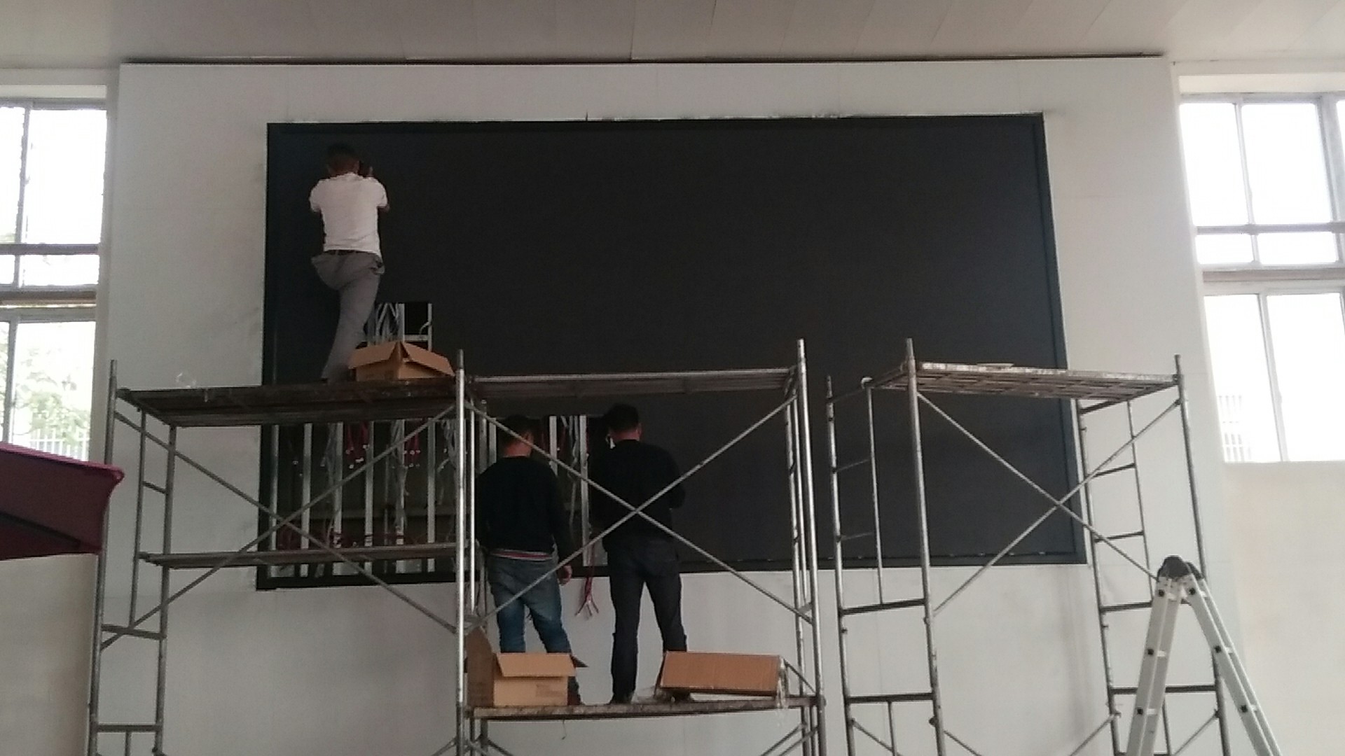 安陽學(xué)校P3全彩顯示屏安裝現(xiàn)場(chǎng)