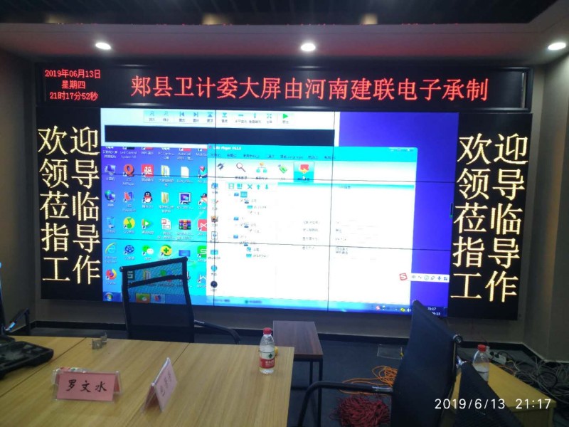 近日,建聯(lián)電子為平頂山郟縣衛(wèi)計(jì)委設(shè)計(jì)一套大屏顯示系統(tǒng),中間為55寸三星液晶拼接屏,兩邊為室內(nèi)雙色LED顯示屏,頂上還用一塊室內(nèi)單色會(huì)標(biāo)屏。LED顯示屏和液晶拼接屏的完美結(jié)合,營造了一種視覺盛宴。
